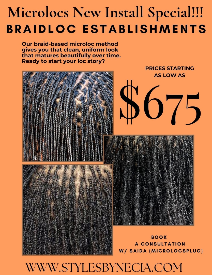 Get ready to unleash your true beauty with Styles by Necia and Microlocs today!